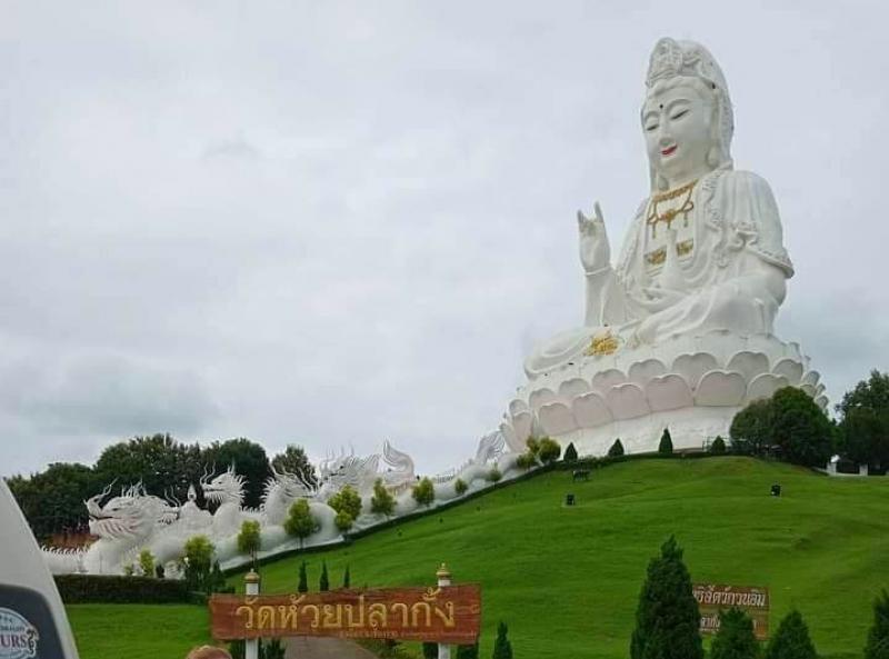 Wat Huay Pla Kang a stunning 79-meter-tall white Guanyin (Goddess of Mercy) statue — one of the tallest in Thailand.