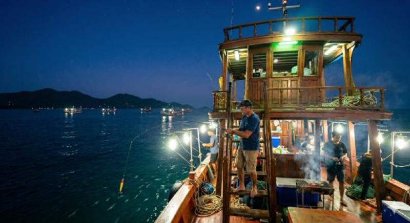 ☛ 07:00 PM: Depart into the moonlit Gulf of Thailand to reach the most productive night fishing spots.