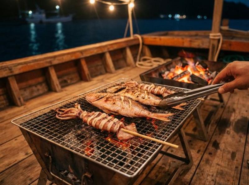 ☛ 09:30 PM: Enjoy a delicious BBQ dinner on deck. ⚠️ Note: If the catch is successful, the crew will grill your fresh fish right on the spot!