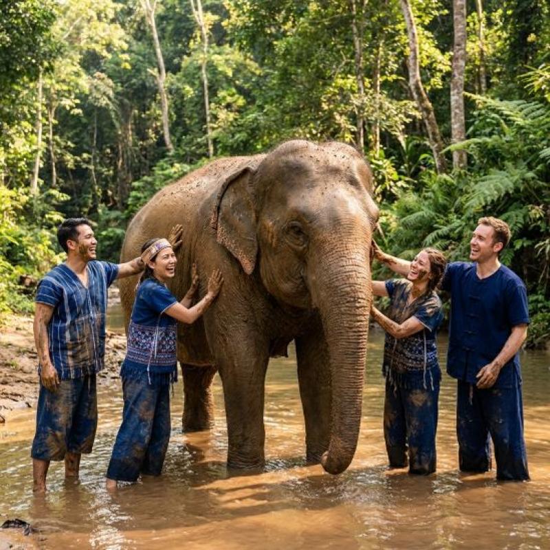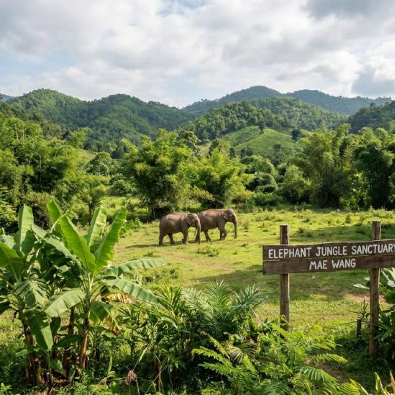 The Elephant Jungle Sanctuary Chiang Mai (Mae Wang) offers an industry-leading ethical encounter with rescued elephants in their natural forest habitat. This professional eco-tour prioritizes animal welfare, allowing travelers to engage in feeding, mud spas, and river bathing without riding, making it the premier choice for responsible tourism in Northern Thailand.