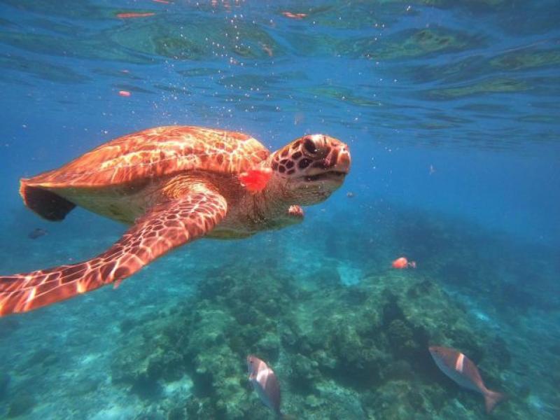 Spot sea turtles, reef sharks, manta rays, and hundreds of tropical fish species in their natural habitat.